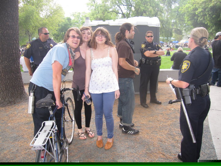 Dangerous peace activists safely quarantined by gentile police in an effort to keep hungry park goers from eating disgustingly tasty homemade food