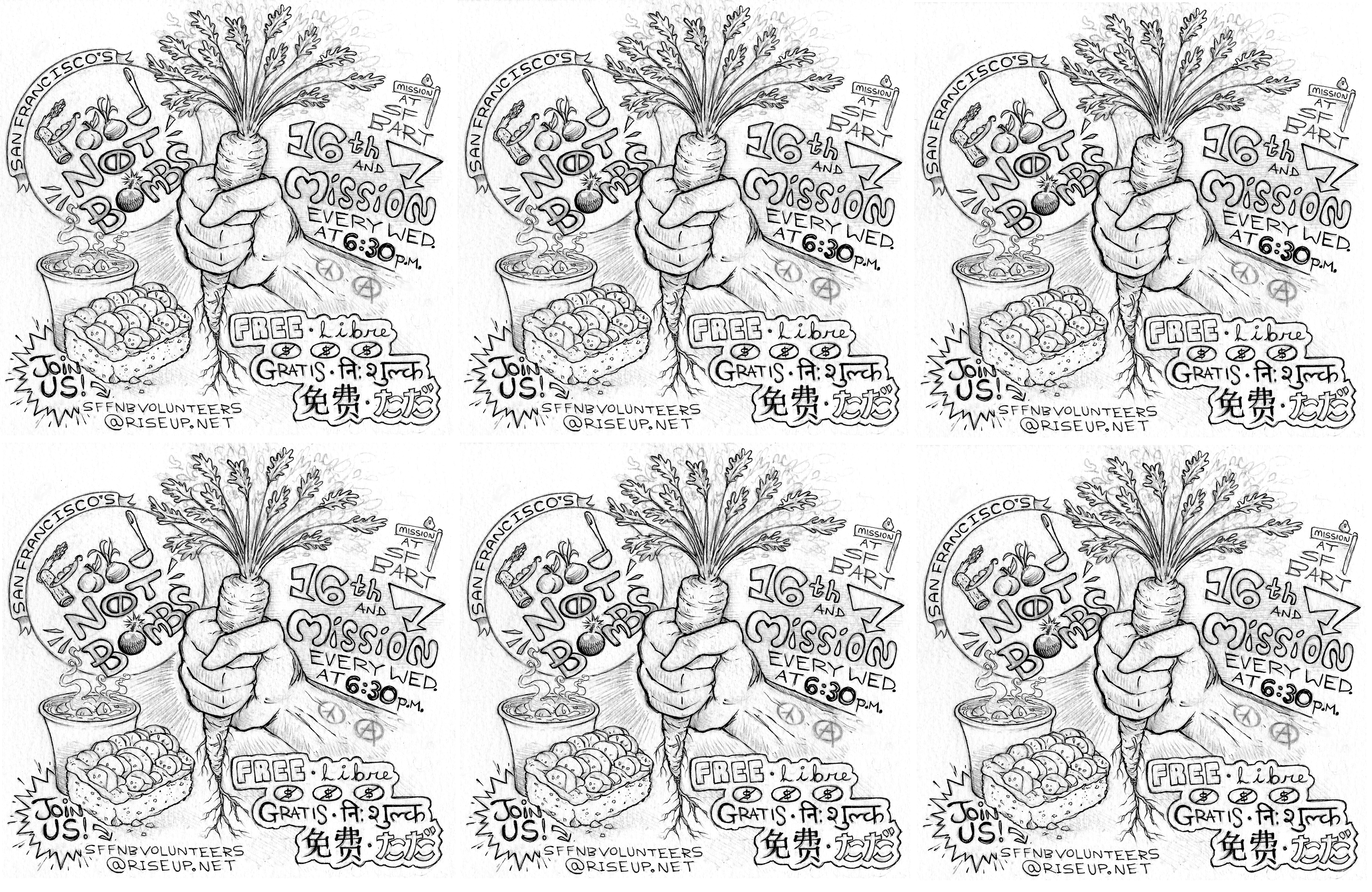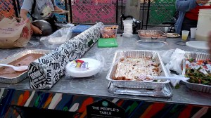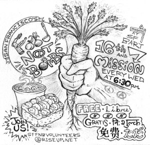 the Food not Bombs serving was a smashing success, and it was great to have flyers to pass out. The cooks really outdid themselves once again! Looking forward to next week 🙂